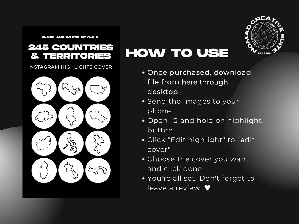 Upgrade your Instagram stories with complete 245 Countries and Territories on a Black and White Style 1